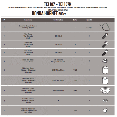 - GIVI TE1107 HONDA HORNET 600 – 600ABS (07-10) YAN KUMAŞ ÇANTA TAŞIYICI