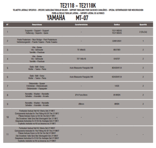 - GIVI TE2118 YAMAHA MT-07 (14-17) YAN KUMAŞ ÇANTA TAŞIYICI