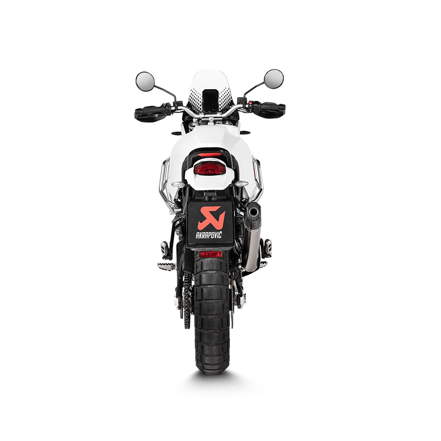 Susturucu dış manşonu, paslanmaz çelik bağlantı borusu ve susturucu iç yapısı ile yüksek kaliteli titanyumdan yapılmıştır. Karbon fiber uç kapağı ve ısı kalkanıyla tamamlanan bu egzoz, ağırlığı %33,4 (1,1 kg) oranında azaltır. Yeni tasarım motosiklet için mükemmel dayanıklılık ve kişiselleştirme sunuyor. Tamamen sıfırdan tasarlanan ısı kalkanına sahip paket, benzersiz bir görünüm sunarken yolcu ve teçhizat koruması da sağlıyor. Standart stok sistemiyle donatılmış ve Akrapovič’in şirket içi dinamosunda test edilen Ducati DesertX ile karşılaştırıldığında, 9.400 dev/dk’da 1,8 kW (2,4 bg) güç kazanımı ve 8.100 dev/dk’da 1,8 Nm tork artışı, mükemmel bir gaz kelebeği tepkisiyle birleşiyor. EC/ECE tip onayı sertifikasına sahip olan ve yeniden eşleme gerektirmeyen, basit bir tak ve çalıştır kurulumu olan egzozdan derin, canlı ve sportif bir ses yayılıyor.