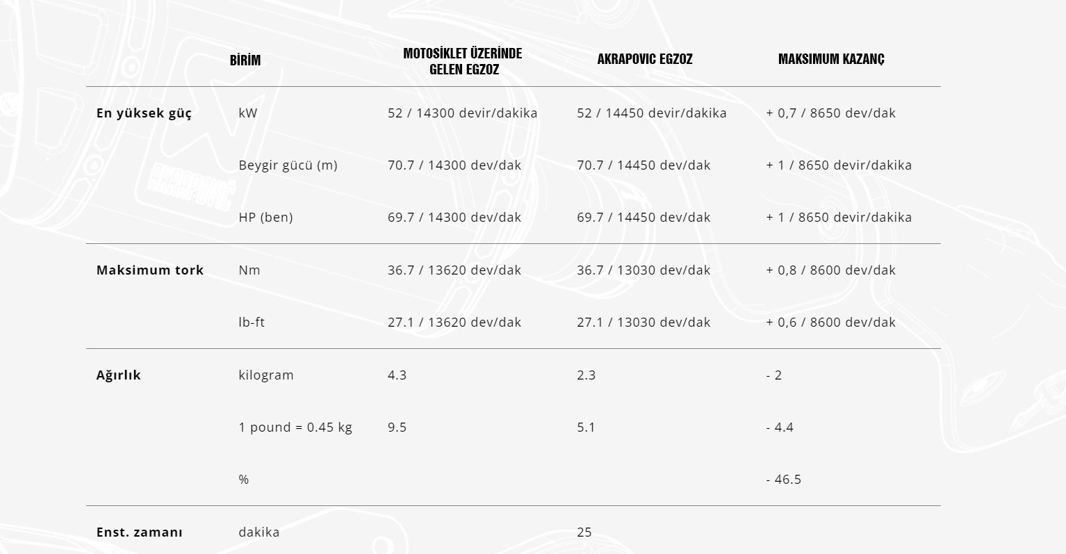 Bu egzoz motosikletin ve sportif görünümüne uyması için daha kompakt bir şekle sahiptir. El yapımı karbon fiber parçalar kullanılarak üretilmiş olup ve mükemmel şekilde yarışlarda kanıtlanmış malzemede titanyum uç kapağı ile tamamlanmıştır. Güç ve tork, tüm aralıkta artar ve standart stok sistemine göre ağırlık tasarrufu, gelişmiş performansa katkıda bulunur. Daha fazla işitsel keyif için zenginleştirilmiş bir ton sunar ve EC/ECE tip onaylıdır. Yeniden eşleştirme gerektirmez.