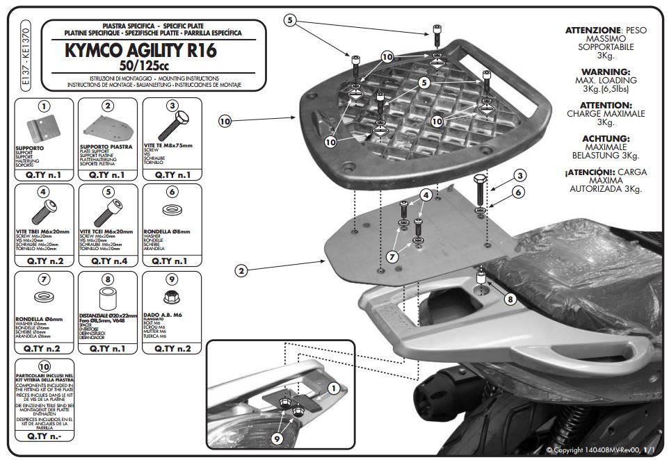 Model: KYMCO AGILITY 50-125-150-200 R16 (08-13)