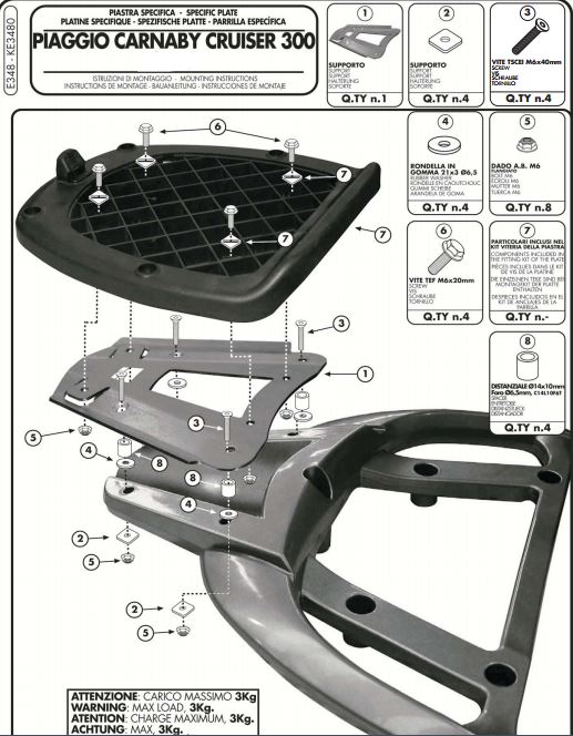 GIVI E348 PIAGGIO CARNABY CRUISER 300 (09-12) ARKA ÇANTA TAŞIYICI