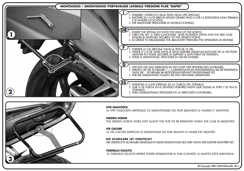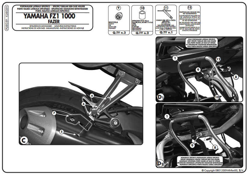 Not : Arka çanta taşıyıcınız yoksa, FZ1 1000 için 365KIT veya FZ1 FAZER 1000 için PLX359KIT kullanılarak monte edilebilir. Arka çantanız varsa direk monte edilebilir.