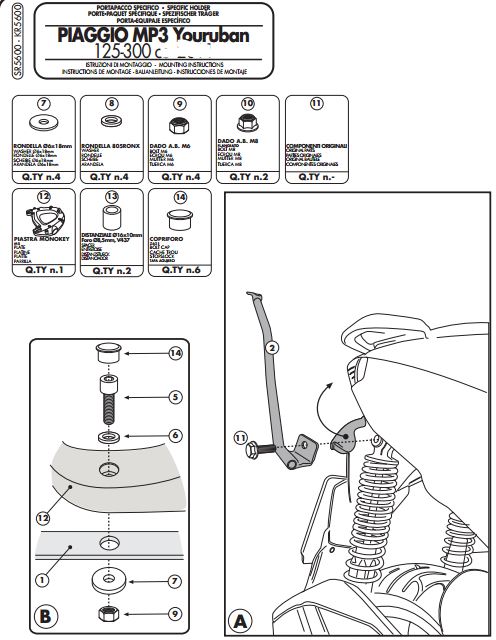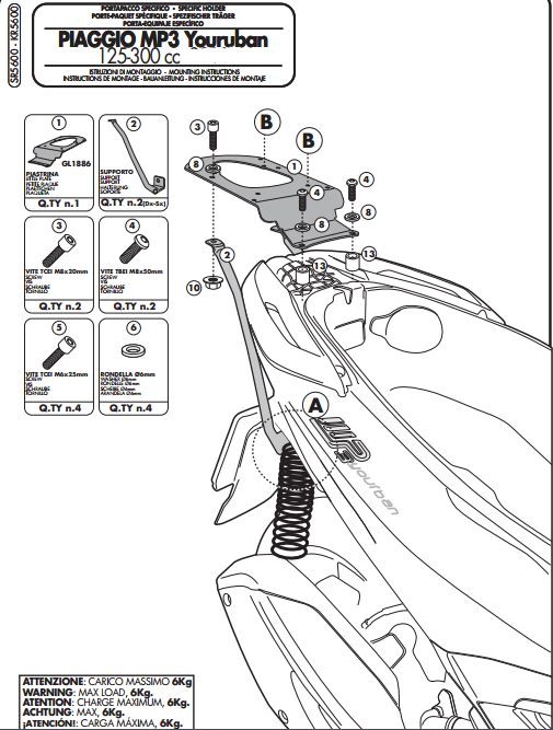 GIVI SR5600 PIAGGIO MP3 YOURBAN 125-300 (11-18) ARKA ÇANTA TAŞIYICI