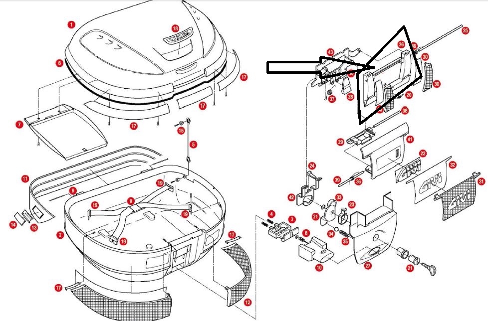 GIVI Z367N ÇANTA KİLİT MEKANİZMA KAPAK ÜST E52