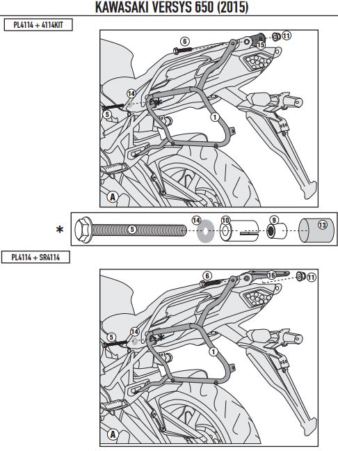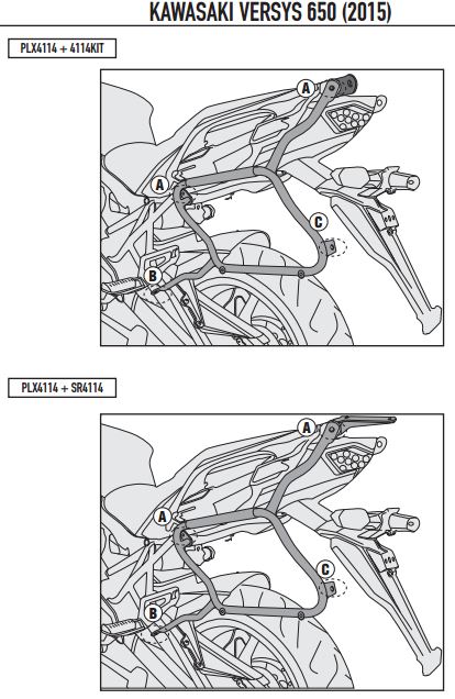 Not : Arka çanta taşıyıcınız yoksa 4114KIT kullanılarak monte edilebilir. Arka çantanız varsa direk monte edilebilir.