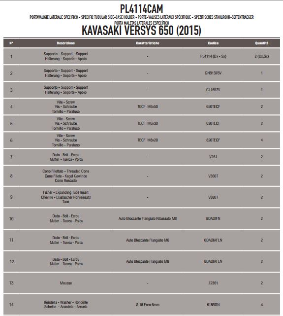 - GIVI PL4114CAM KAWASAKI VERSYS 650 (15-24) YAN ÇANTA TAŞIYICI