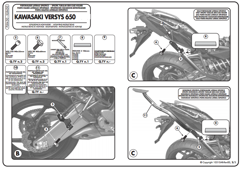 - GIVI PLR450 KAWASAKI VERSYS 650 (10-14) YAN ÇANTA TAŞIYICI