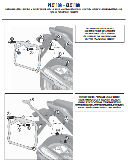 Not : Arka çanta taşıyıcınız yoksa 1109KIT kullanılarak monte edilebilir. Arka çantanız varsa direk monte edilebilir.